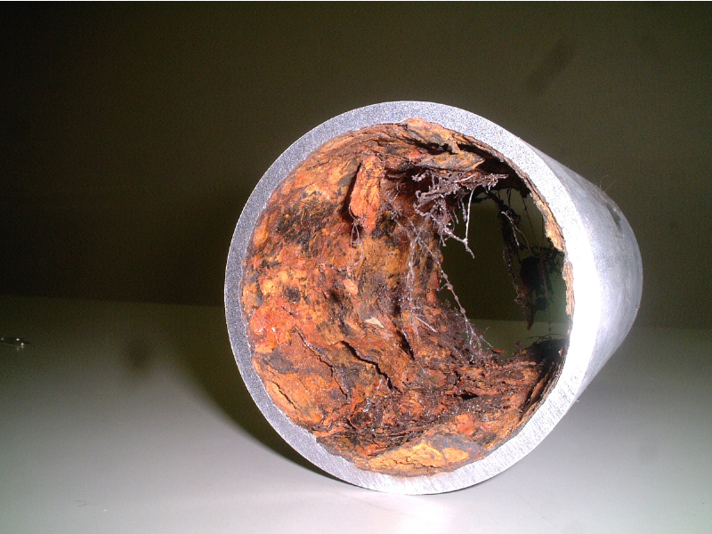 マンション・ビルの排水管に付着した、汚れ・スケール・サビは、毎年、洗浄を行っていても、長期間使用しているうちに腐食・劣化の進行により穴があき、漏水の原因につながります。